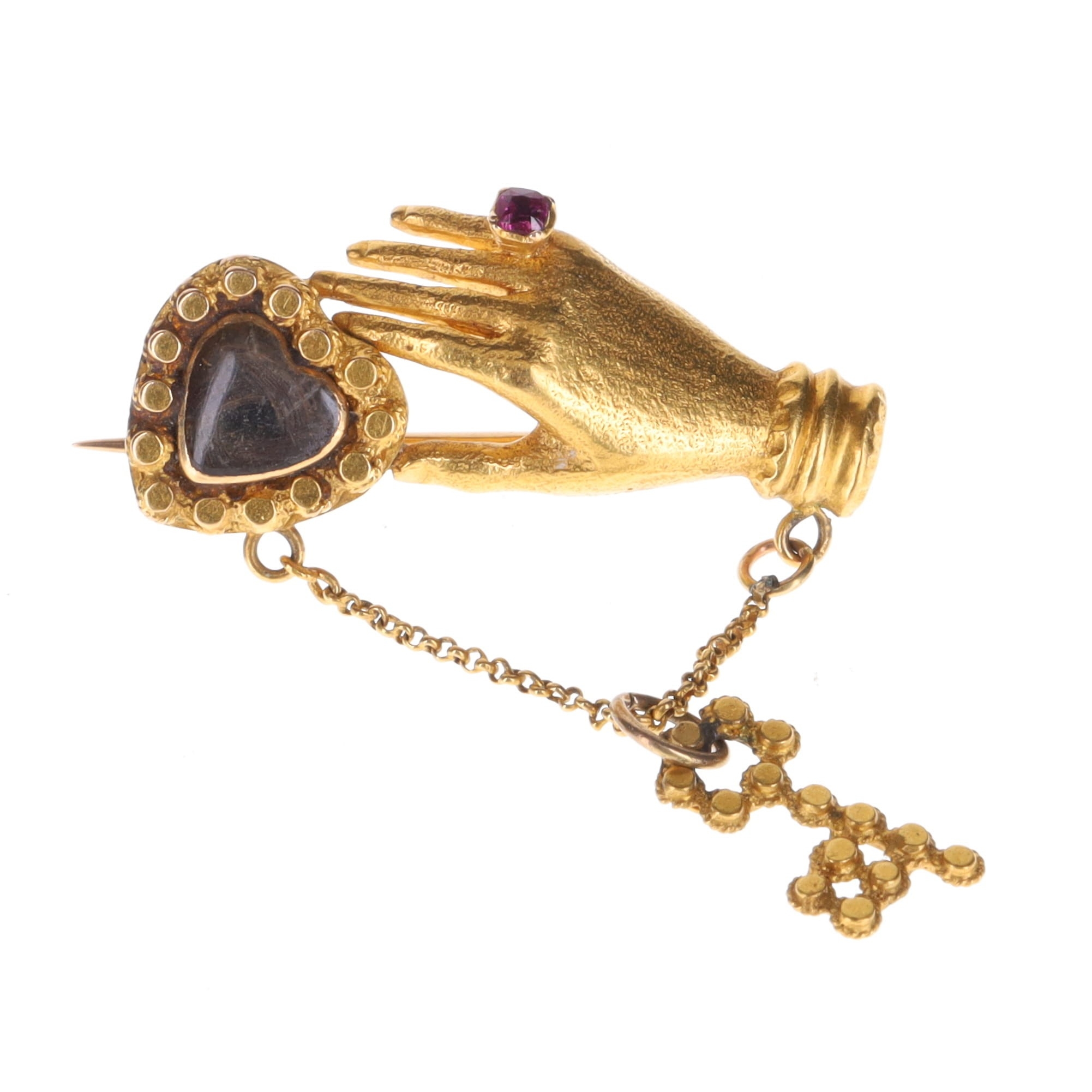 Victorian Gold Manicule Mourning Brooch, 5.5g