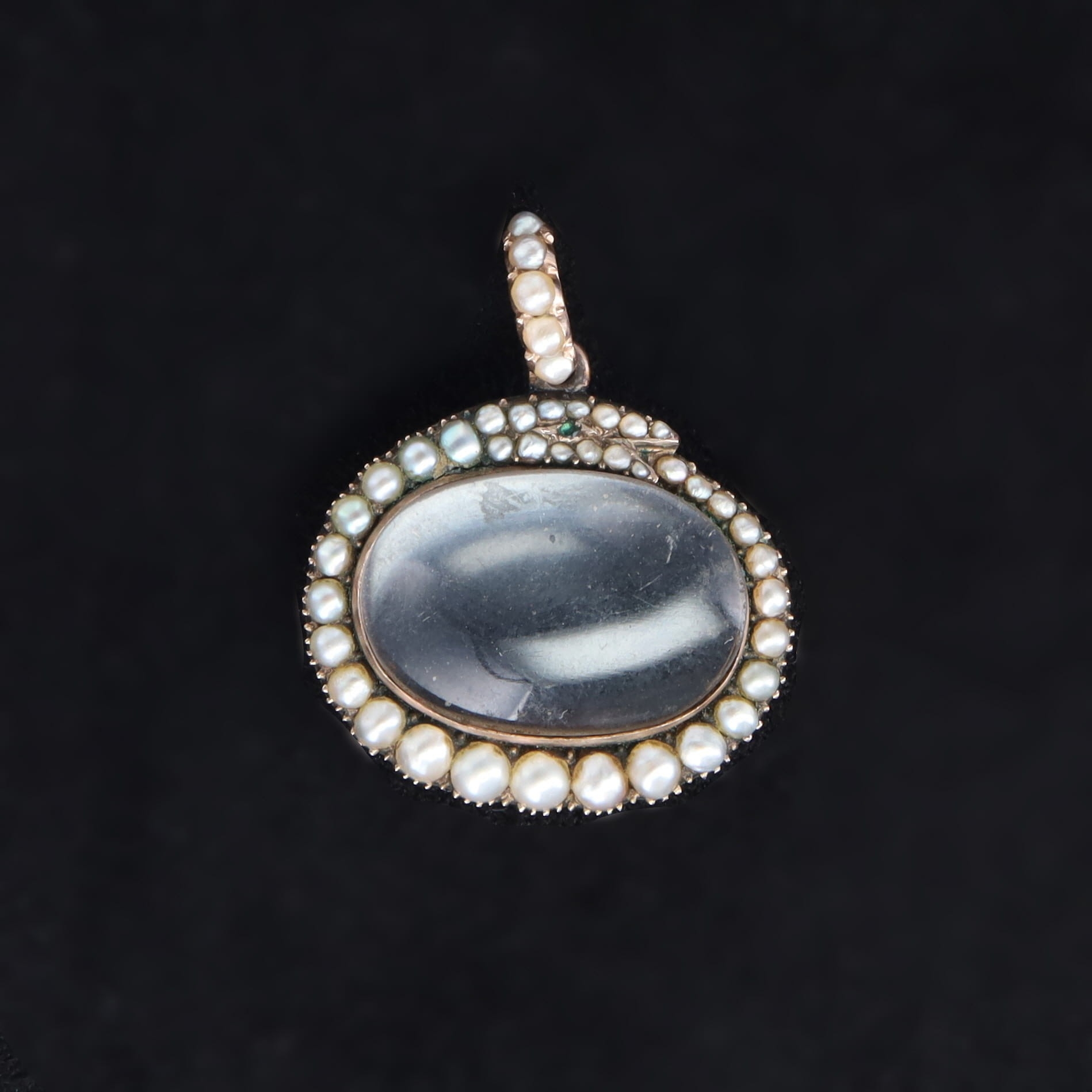 Victorian Ouroboros Pearl and Glass Gold Locket Pendant, 6.5g