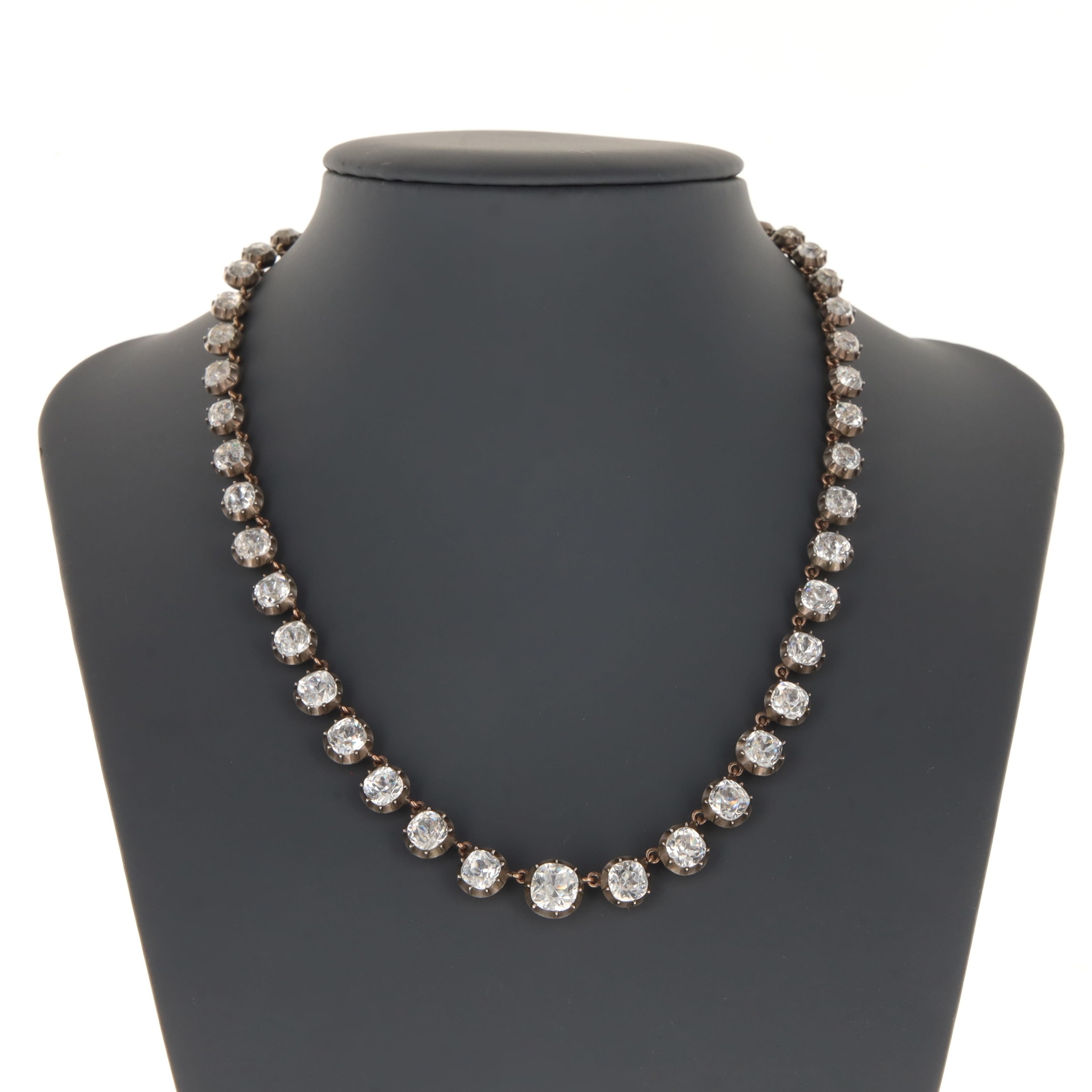 19th Century Gold and Silver Paste Riviere Necklace, 27.5g