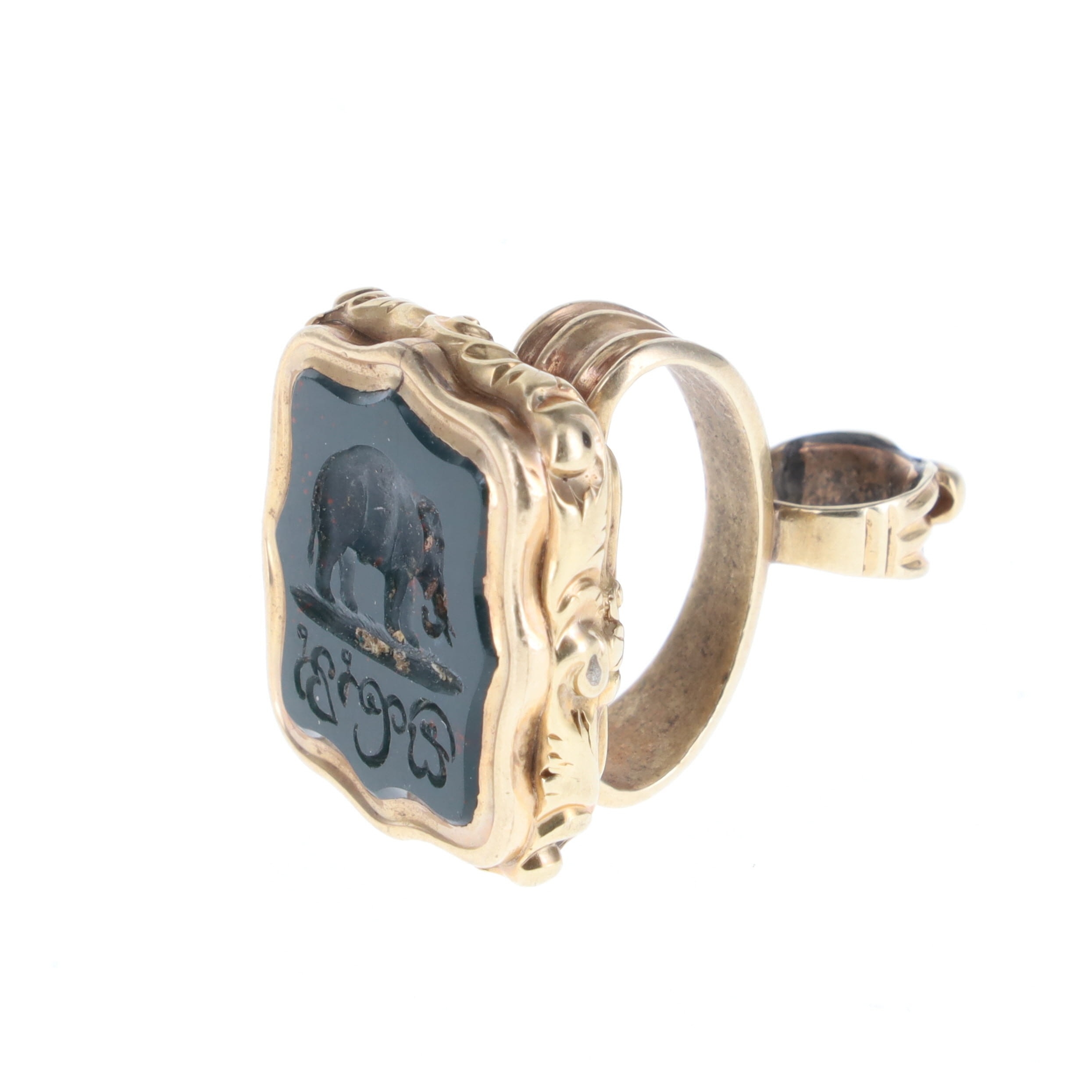 Victorian Carved Bloodstone Gold Fob, 7.1g