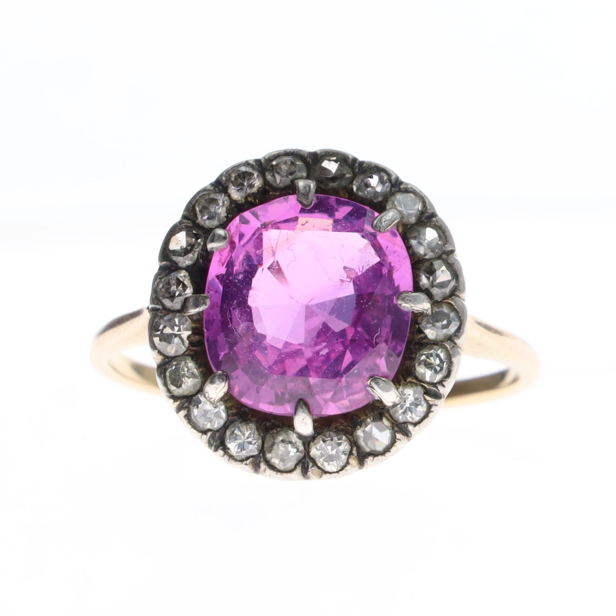 Sri Lankan Pink Sapphire and Diamond Gold Halo Ring