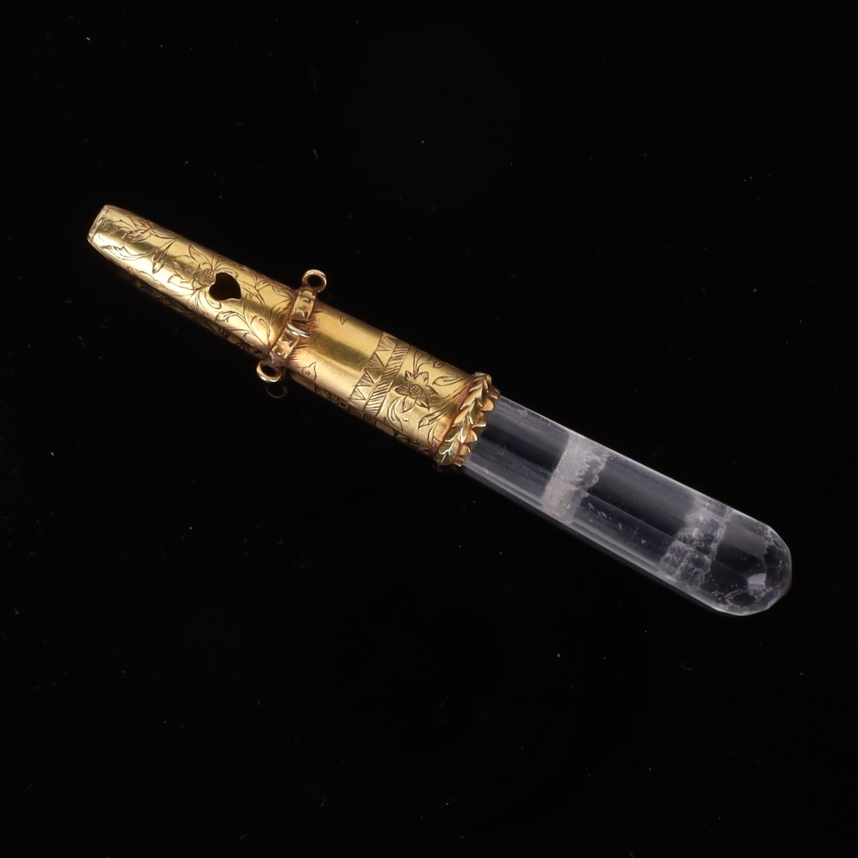 Antique Rock Crystal Gold Baby Rattle and Whistle