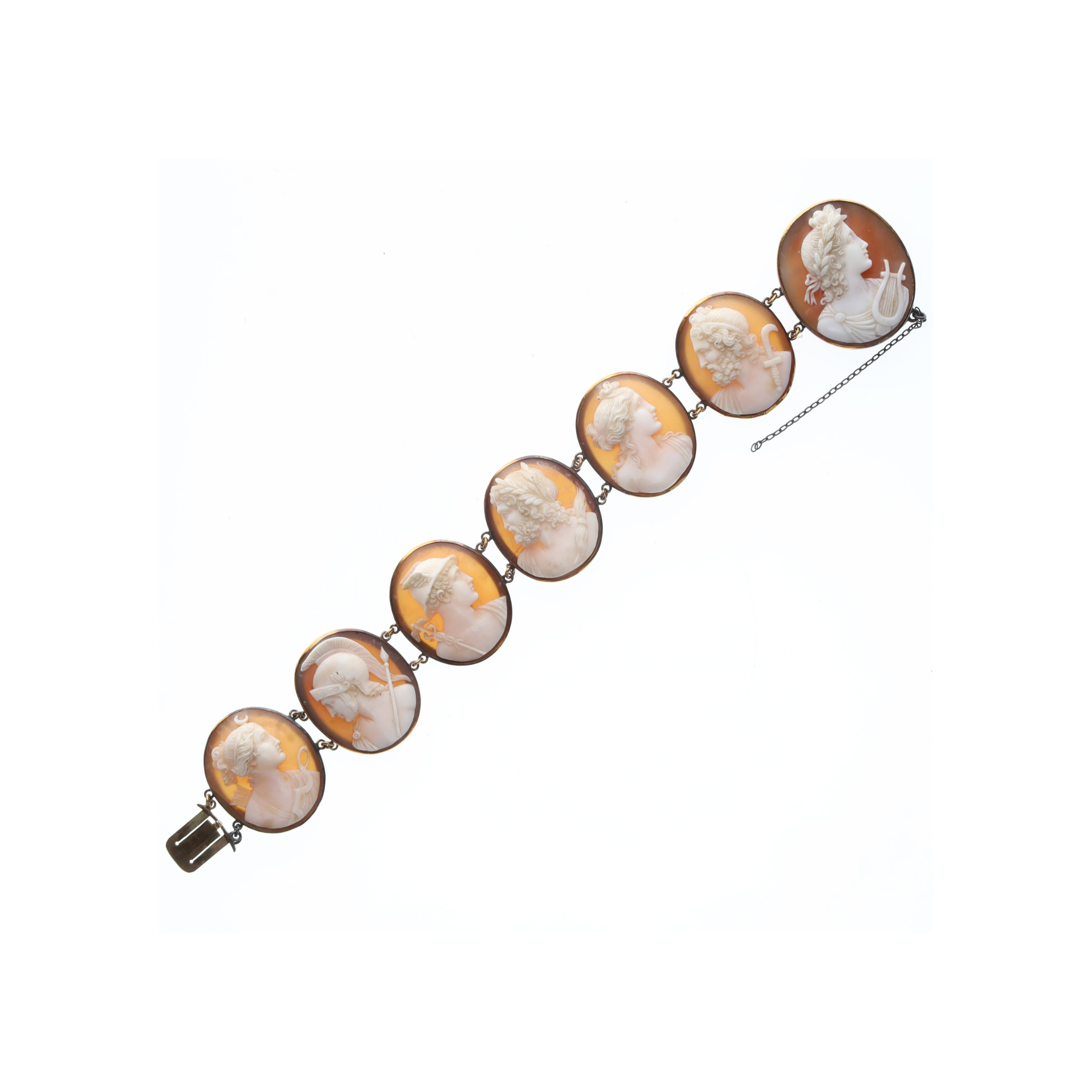 Antique Carved Shell Cameo Gold Panel Bracelet