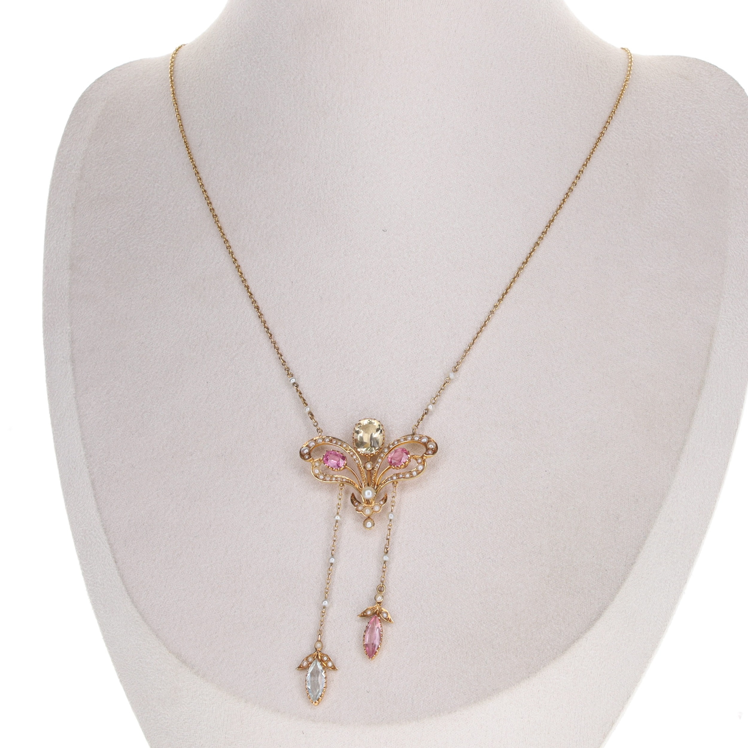Art Nouveau Gemstone Gold Negligee Necklace